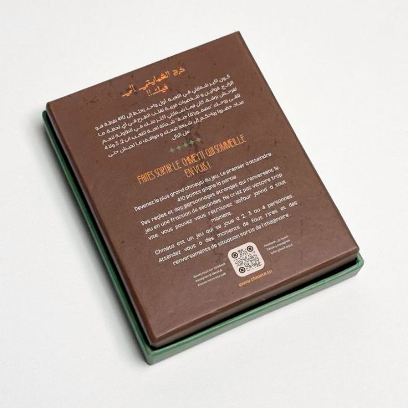 Devenir le roi ou la reine des « Chmeytia » en accumulant les premiers 410 points. Préparez-vous à des éclats de rire et à des rebondissements fous avec ce jeu de cartes tunisien.